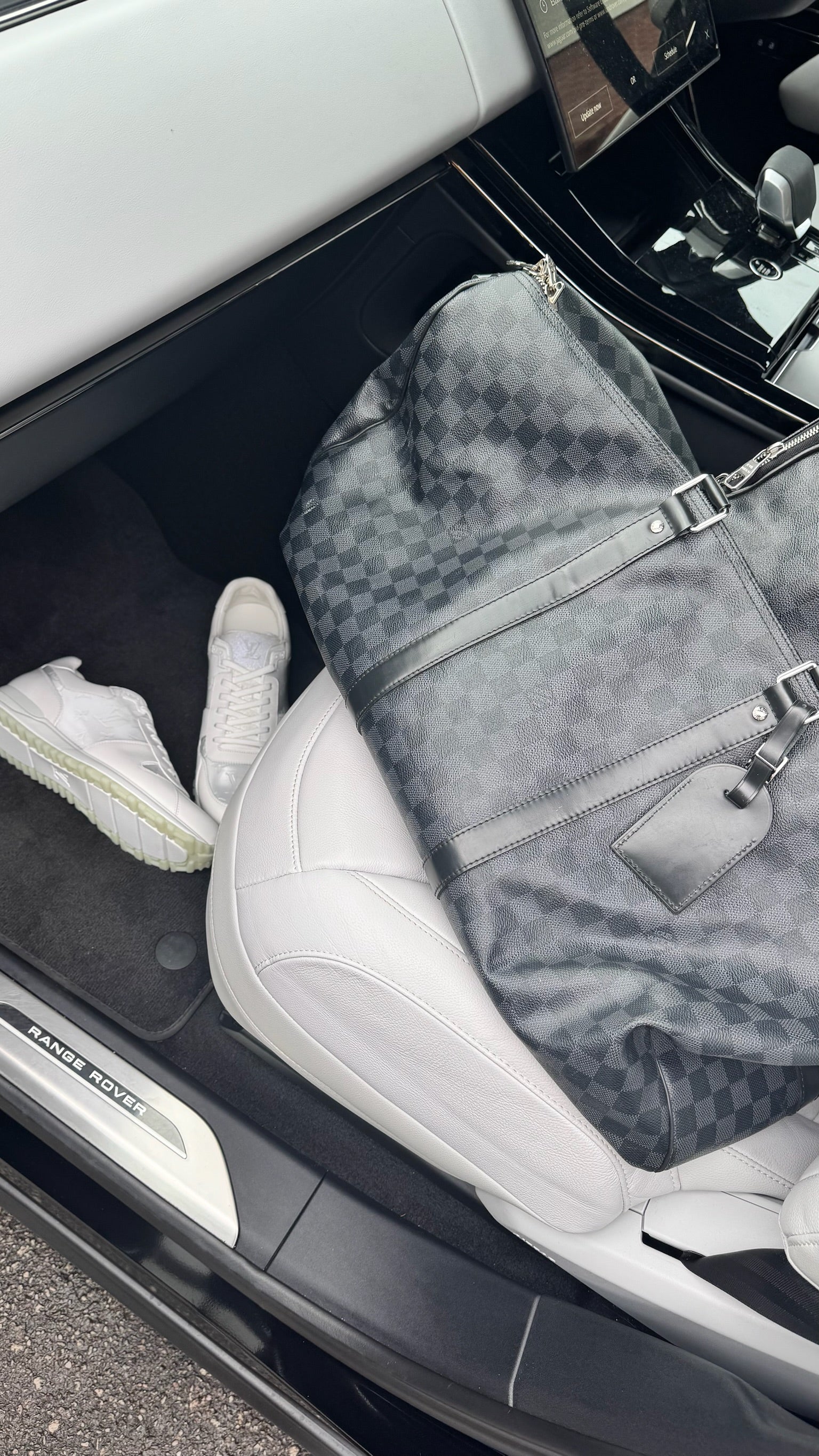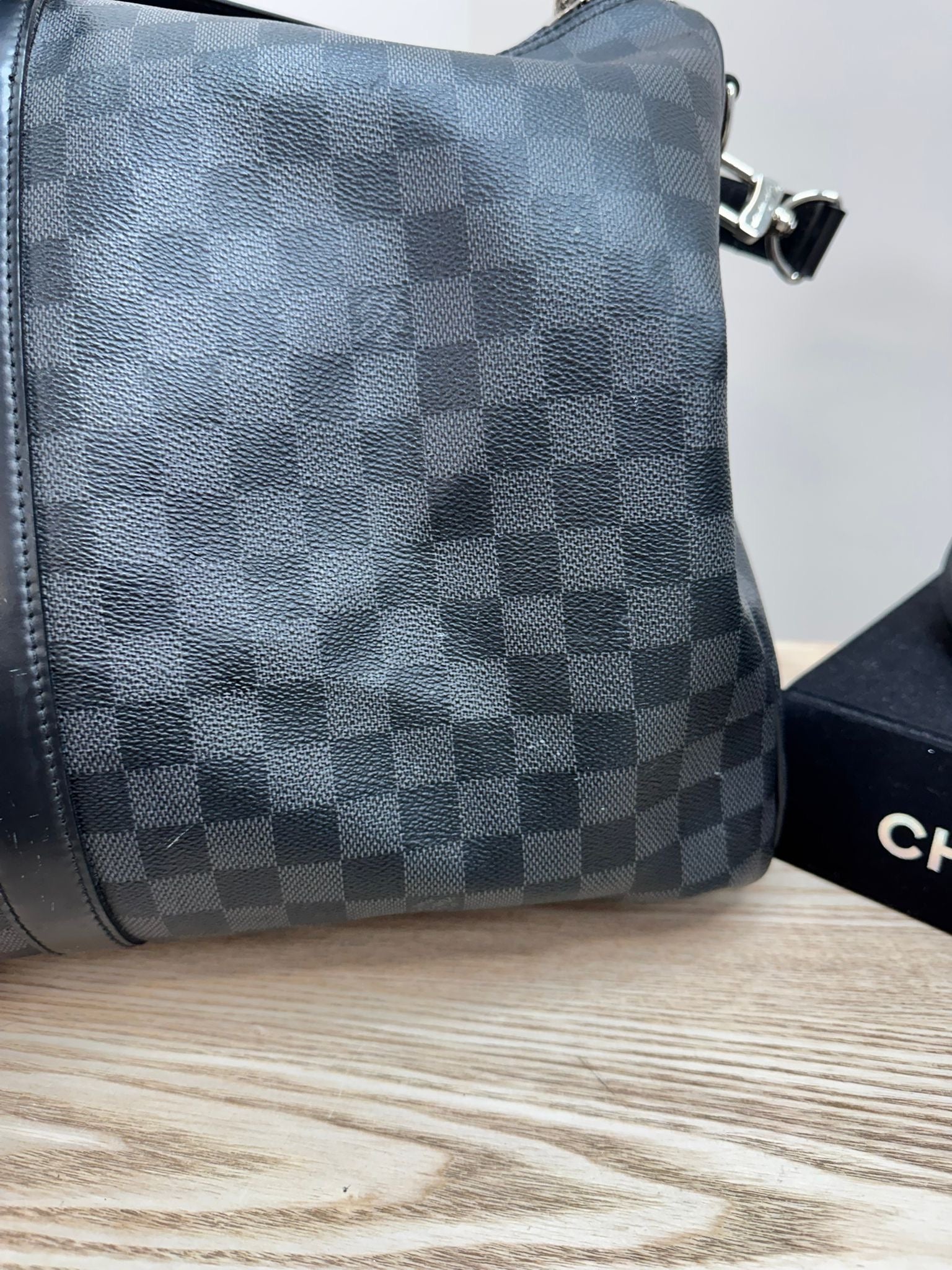 Item: Black Damier Graphite Canvas Keepall Travel Bag