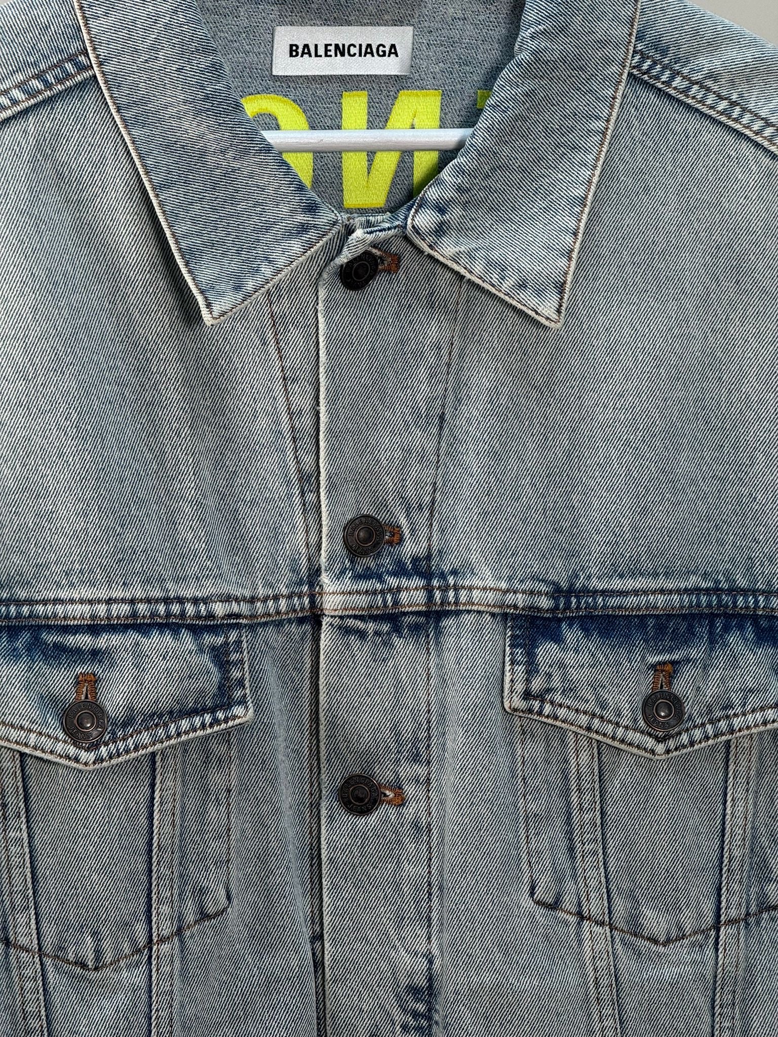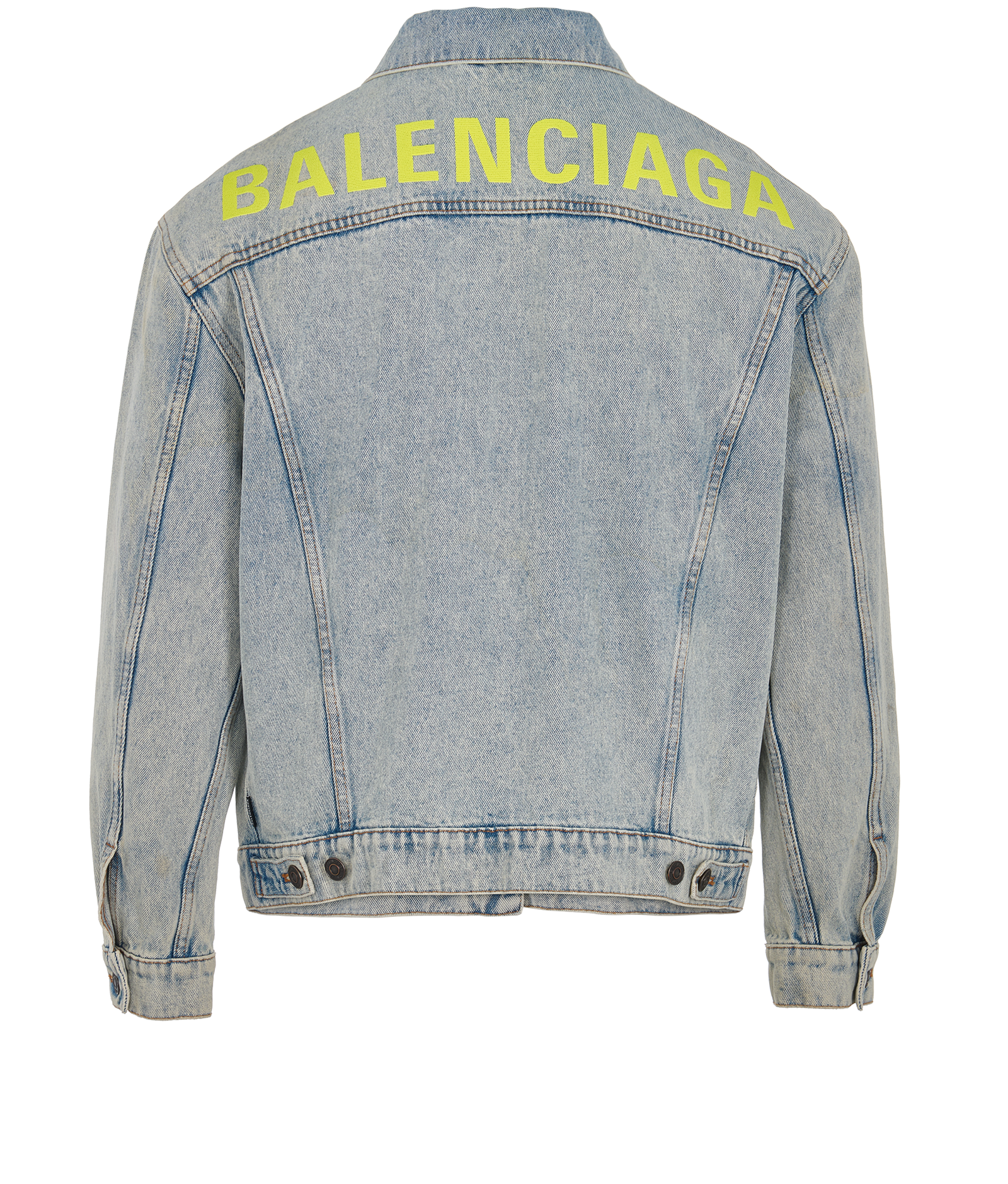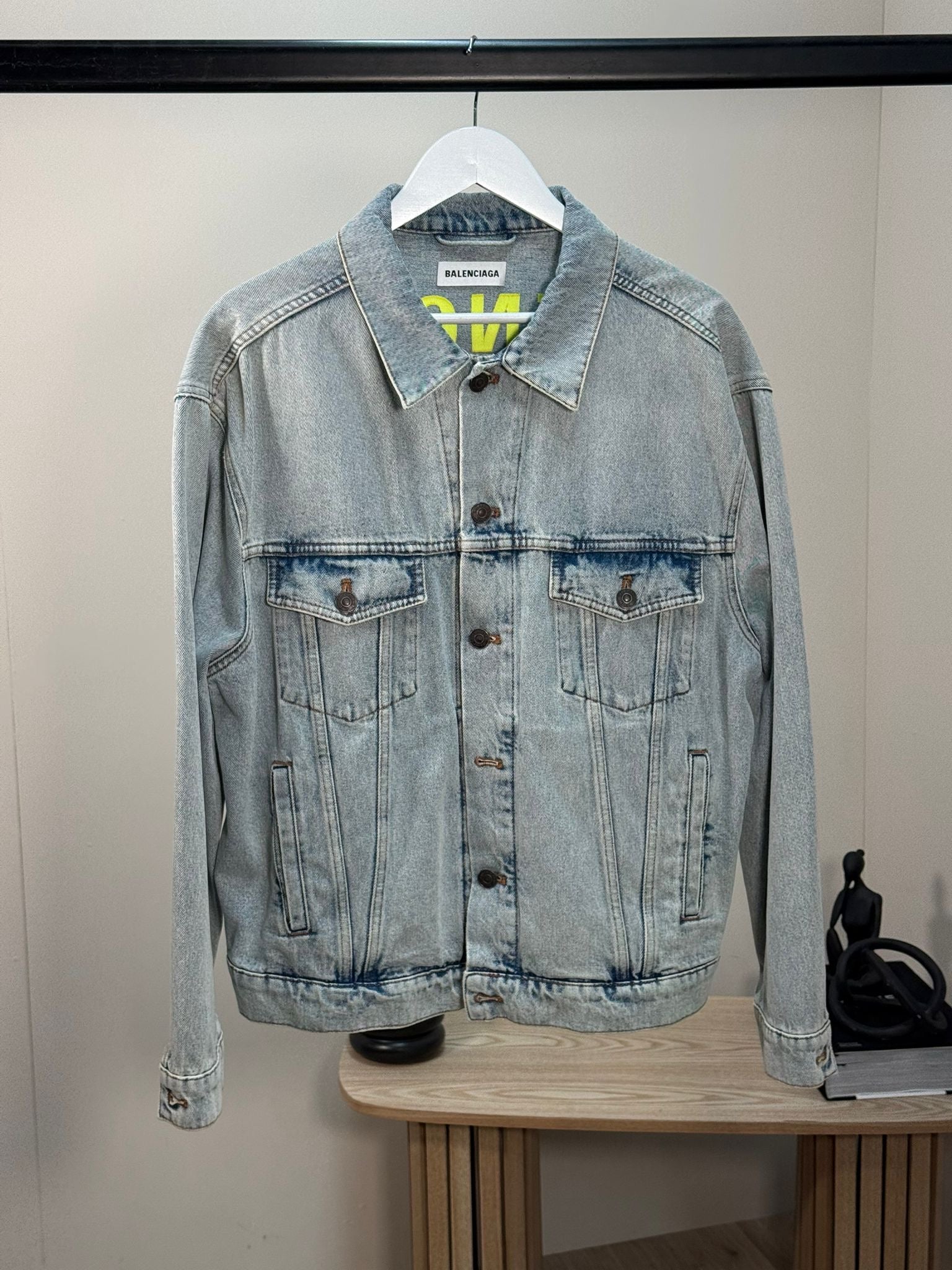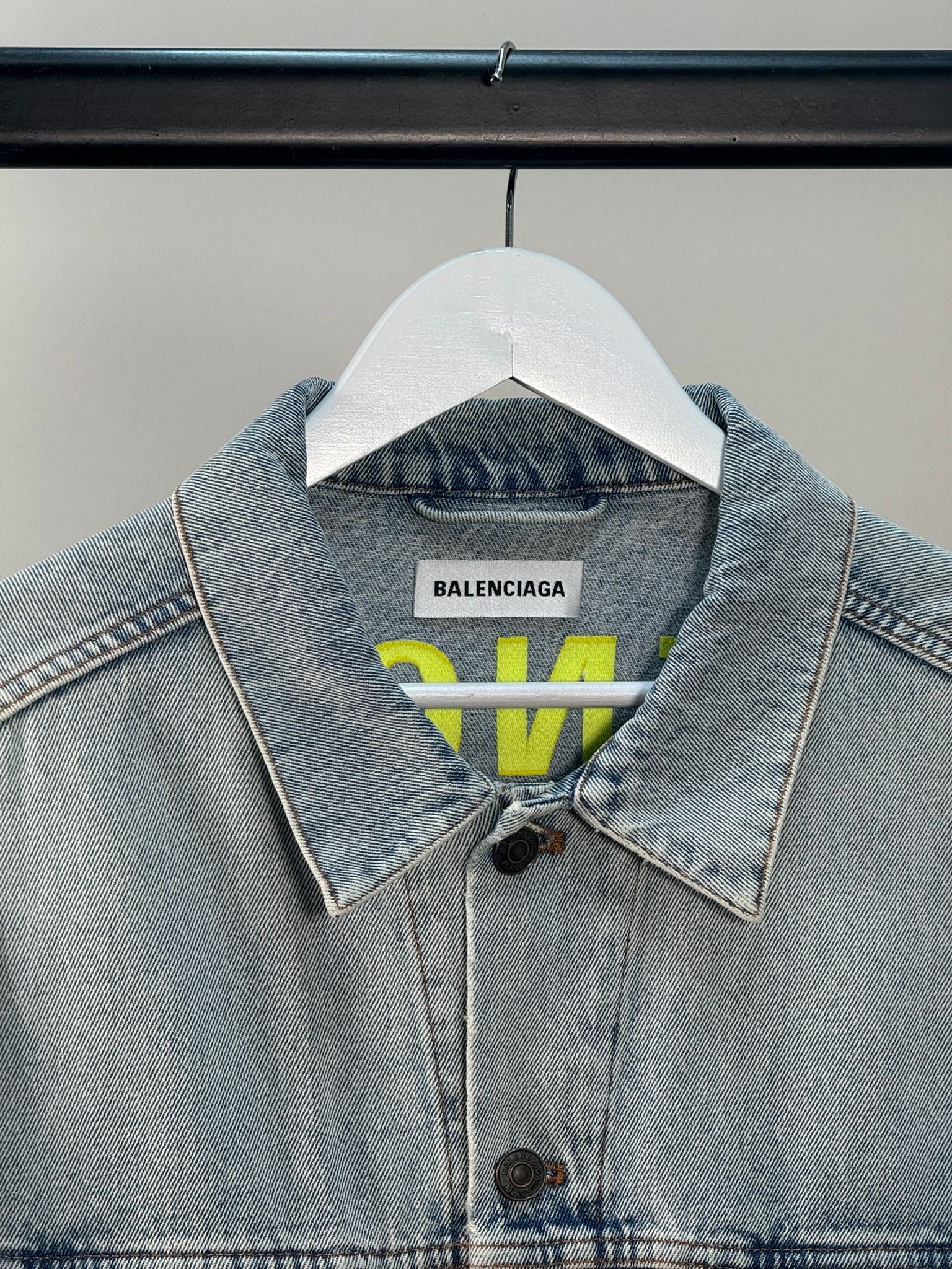 Balenciaga Denim Yellow Logo Jacket - Size 36-SMALL