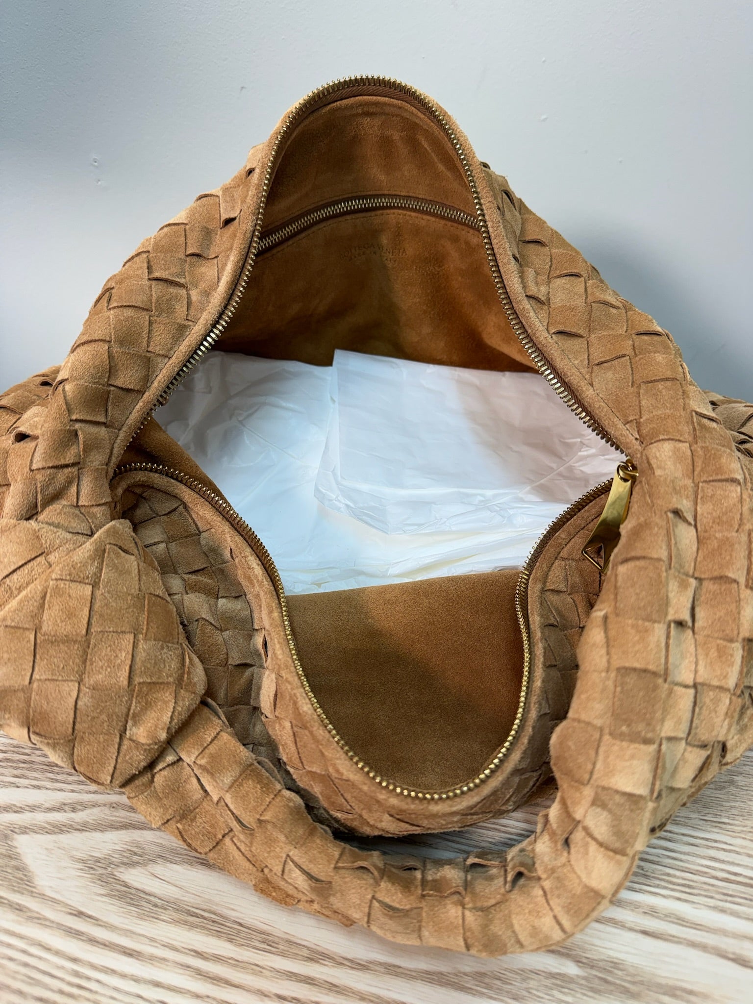 Bottega Veneta Brown Amber Gold Large Jodie Suede Hobo Bag - New No Tags
