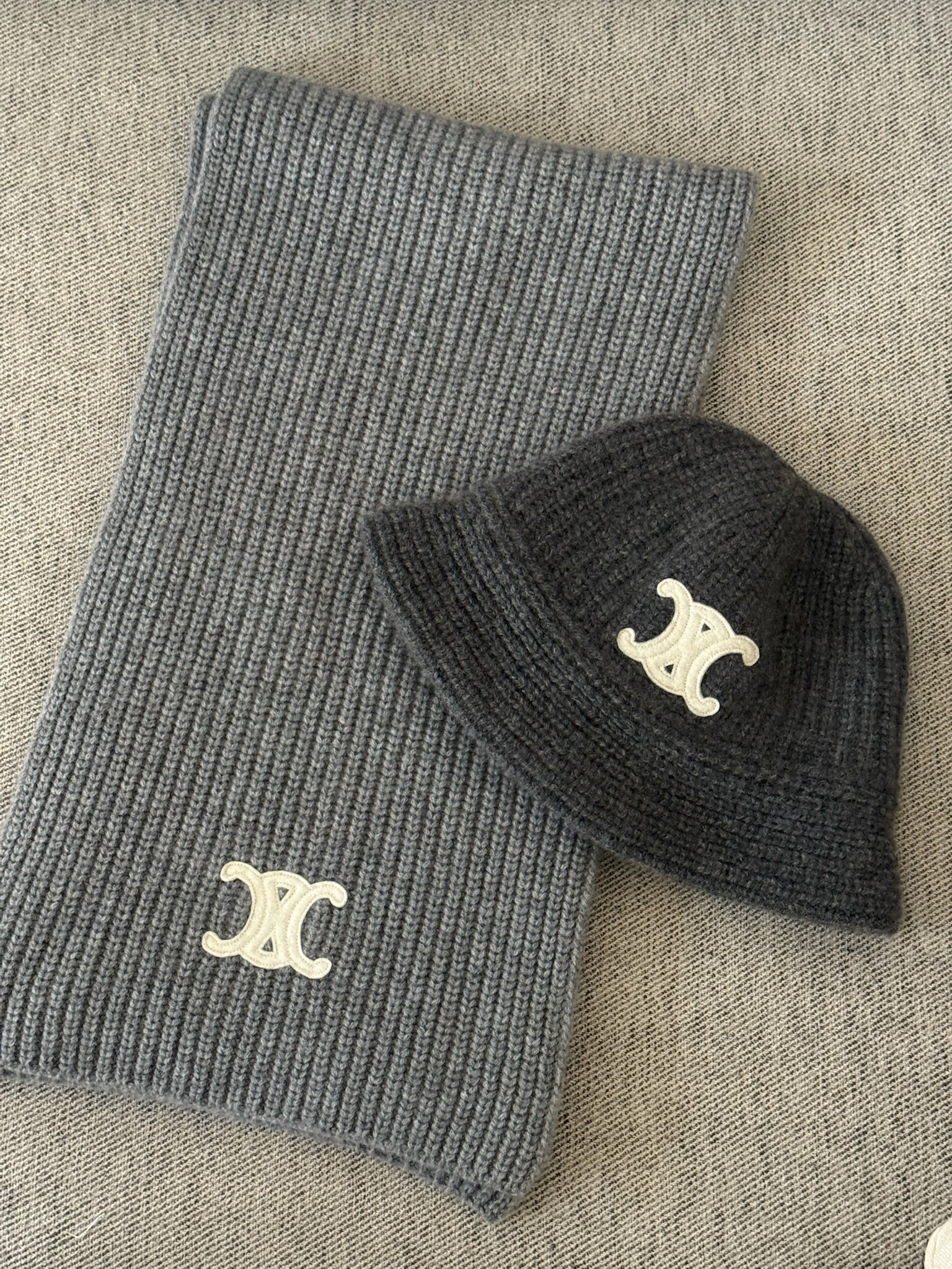 Celine Grey Triomphe Alpaca Wool Crochet Hat - One size