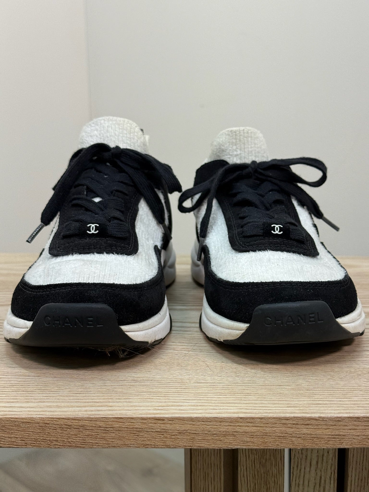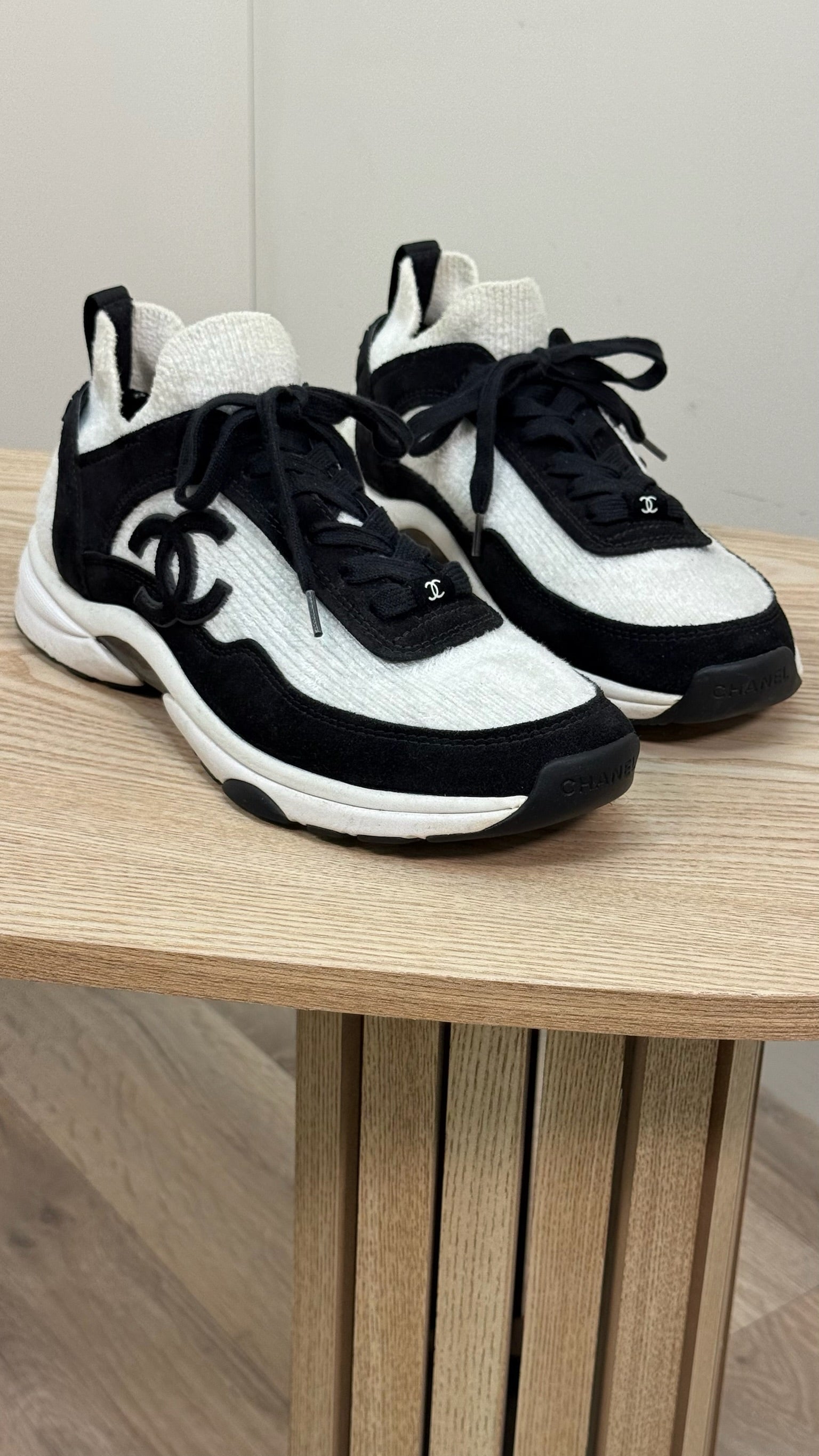 Item: Black And White Fabric Suede Calfskin CC Trainers
