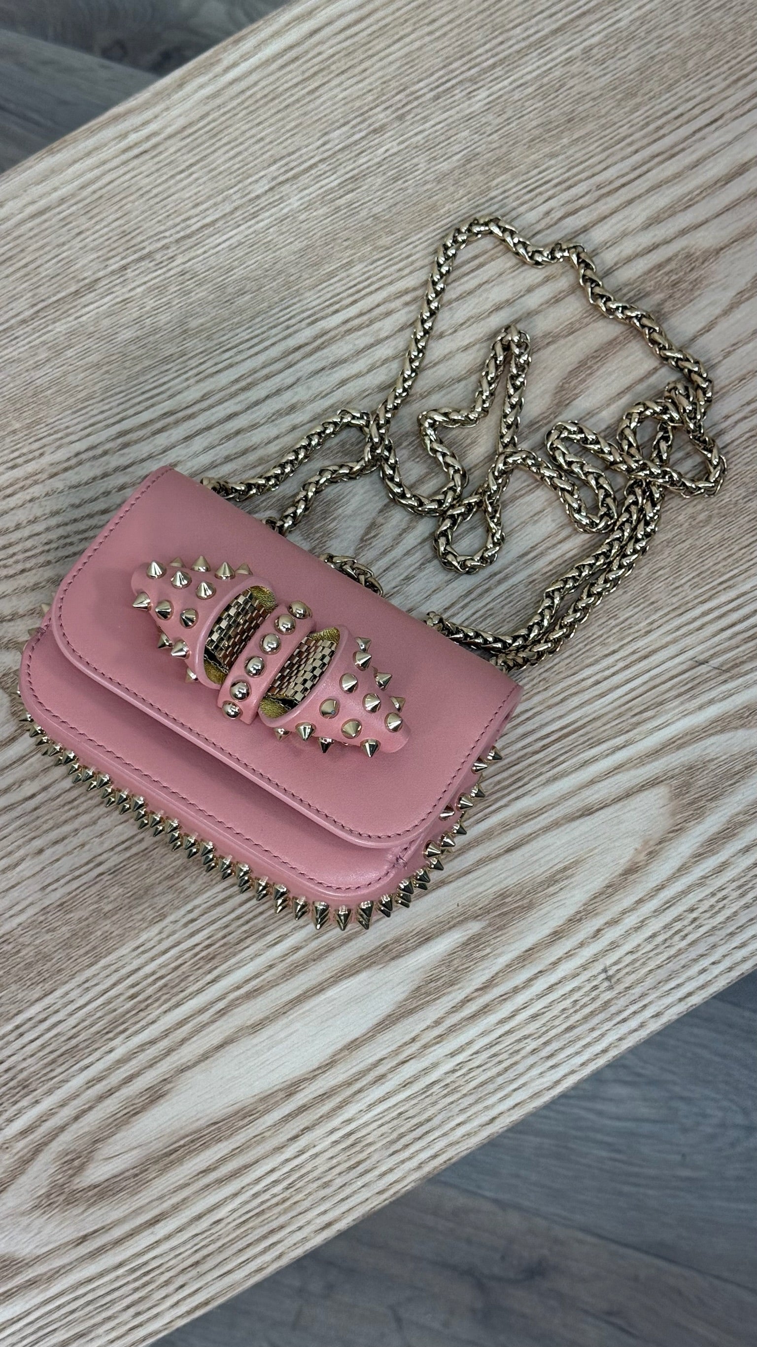 Chrisitan Louboutin Pink Leather Spiked Sweet Charity Bag - One Size