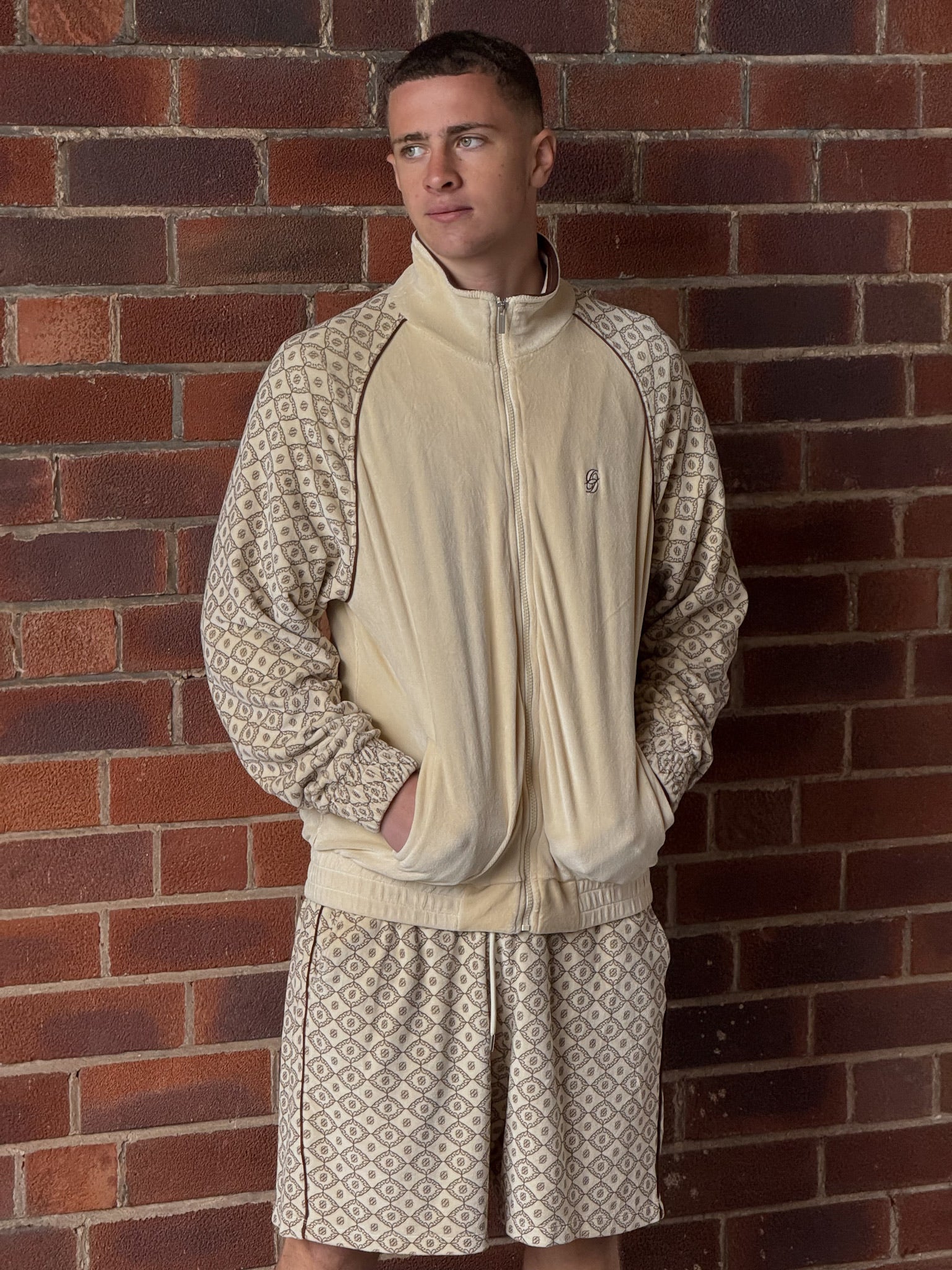 Item: Beige And Brown Zip Up Jacket and Shorts Set