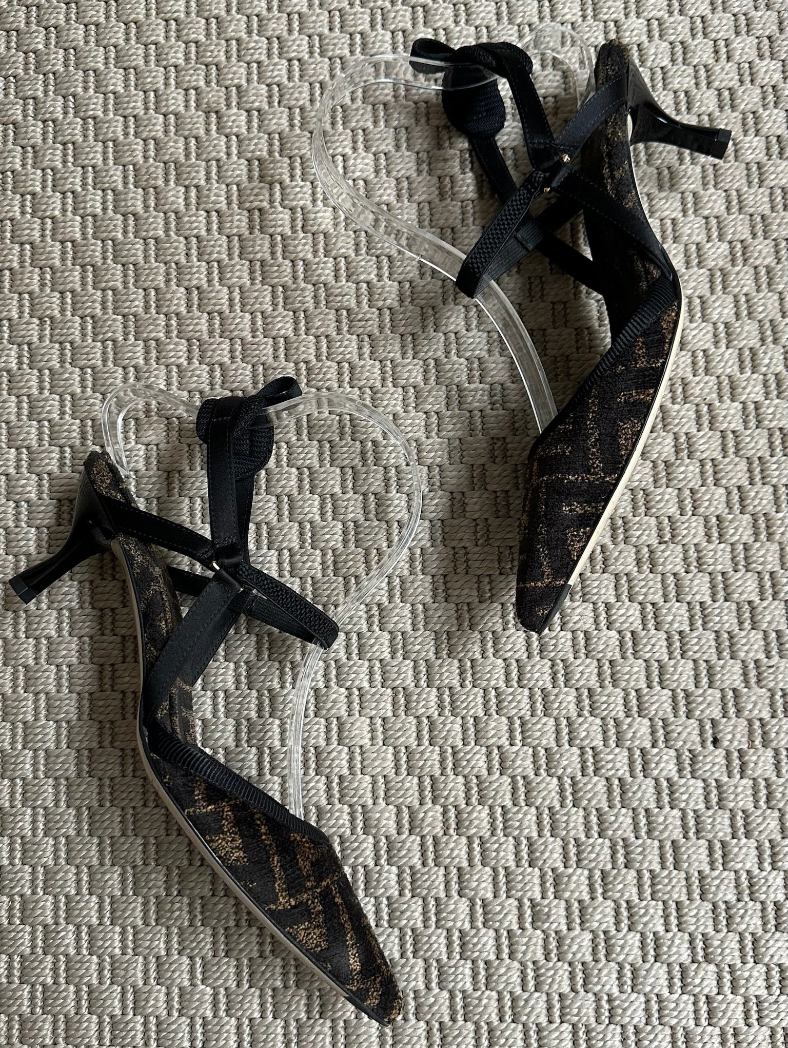 Fendi FF Point Colibri Chenille Slingback Heels-UK 4