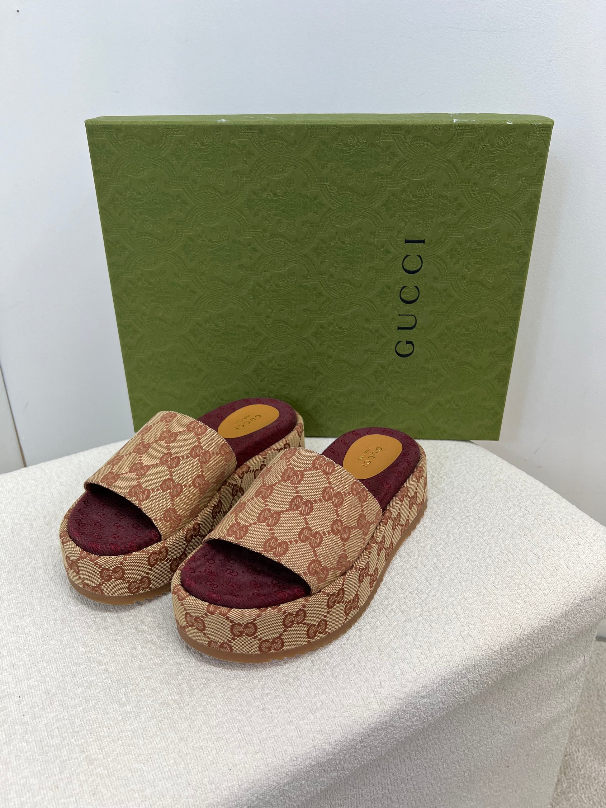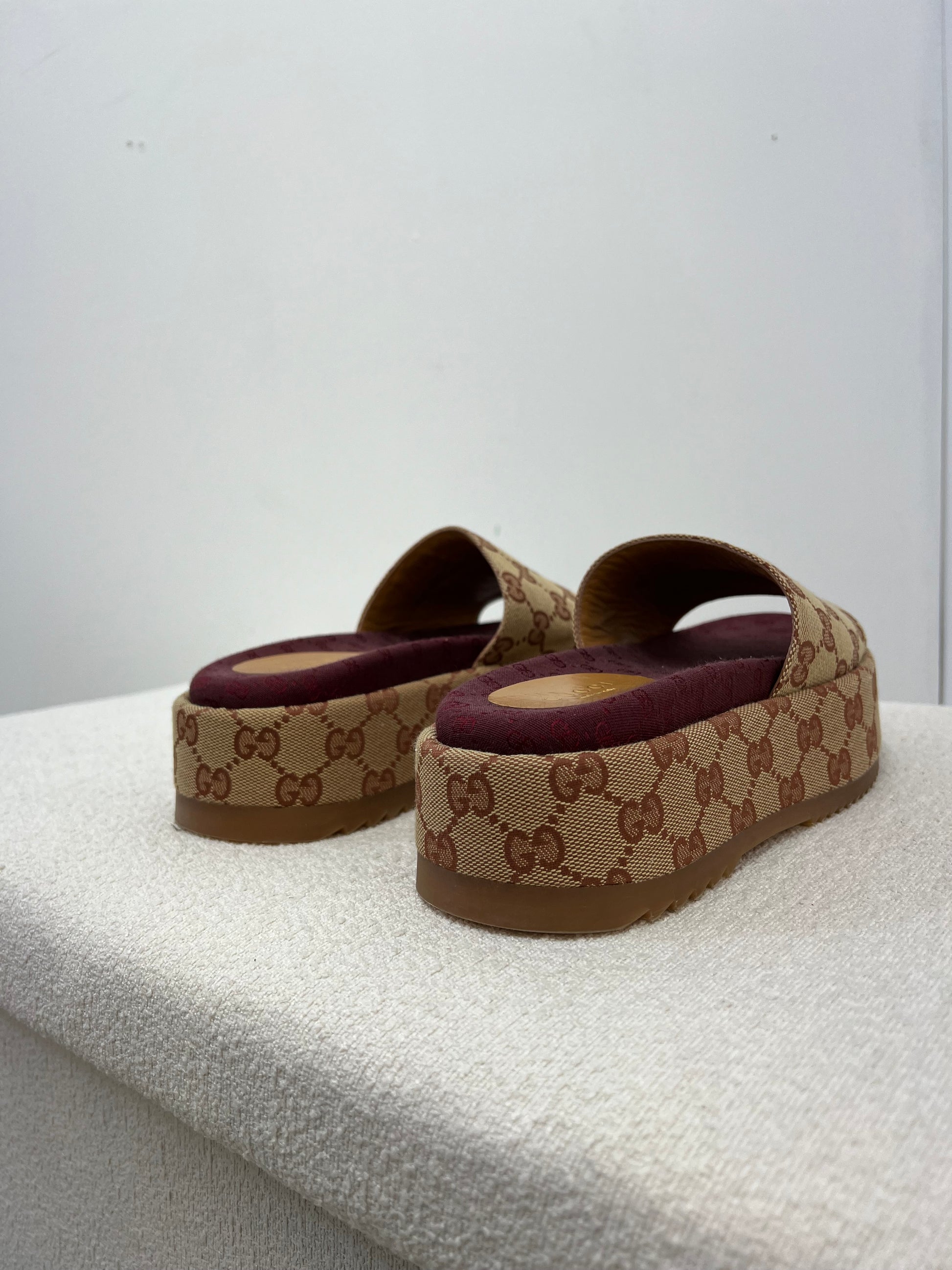 Gucci Platform camel and ebony maxi GG canvas Slide Sandal (Eu 35.5/ UK 2.5) Fits 3