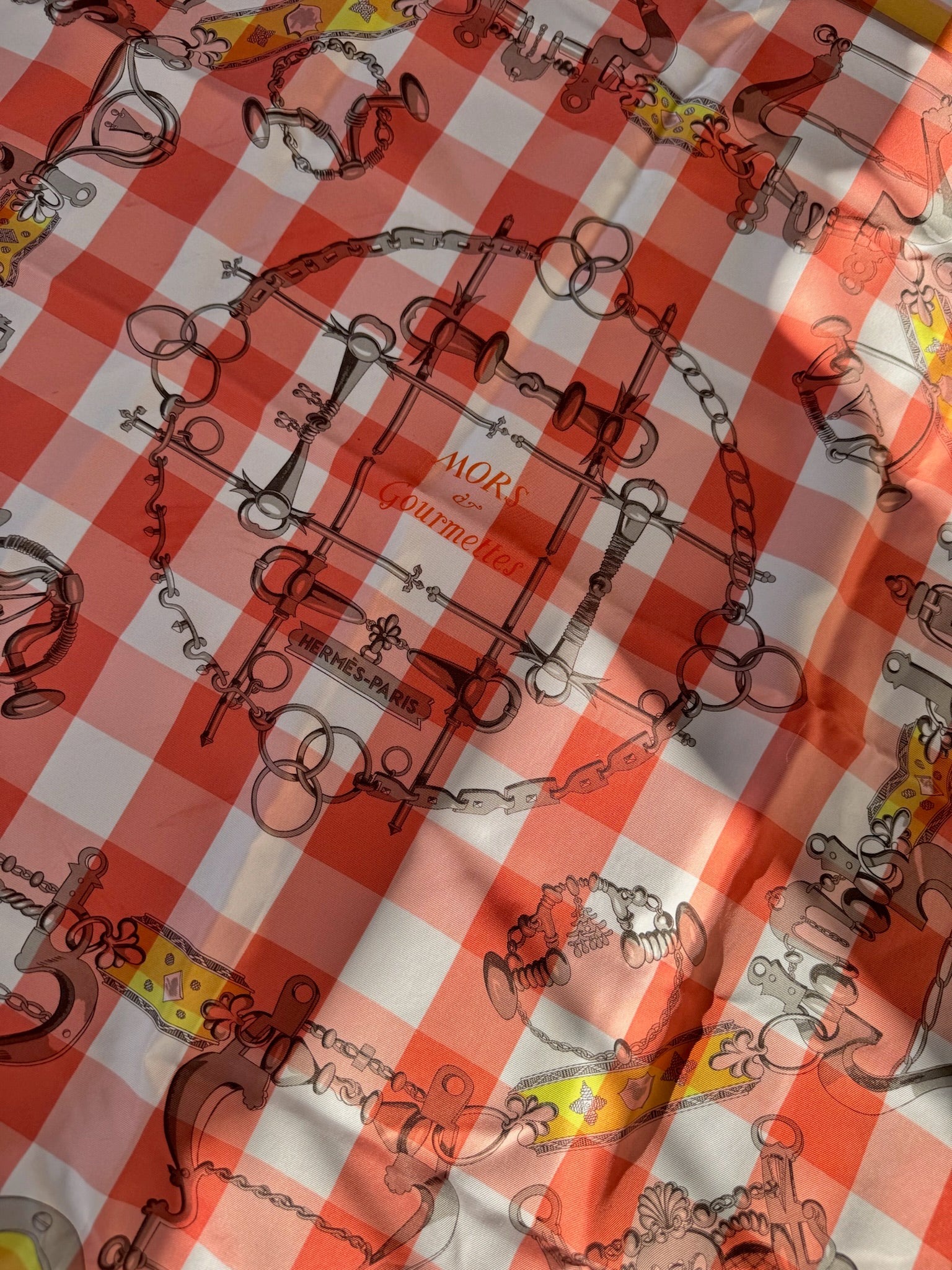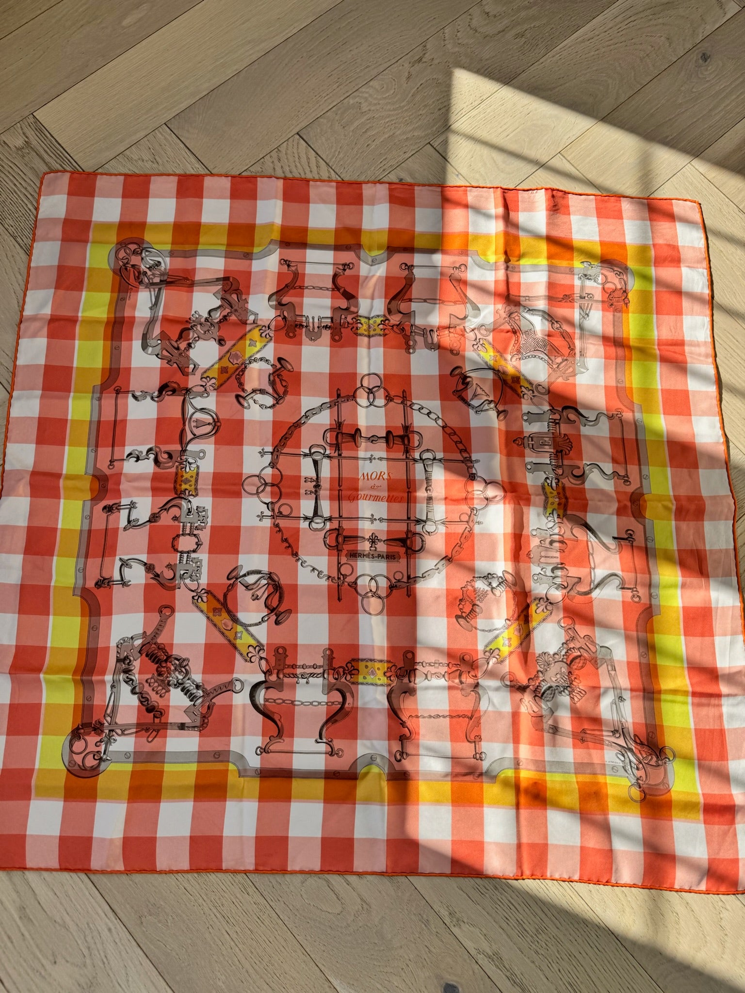Hermès Mors Et Gourmettes Orange Checked Chain Silk Twill Scarf – 90 x 90 cm
