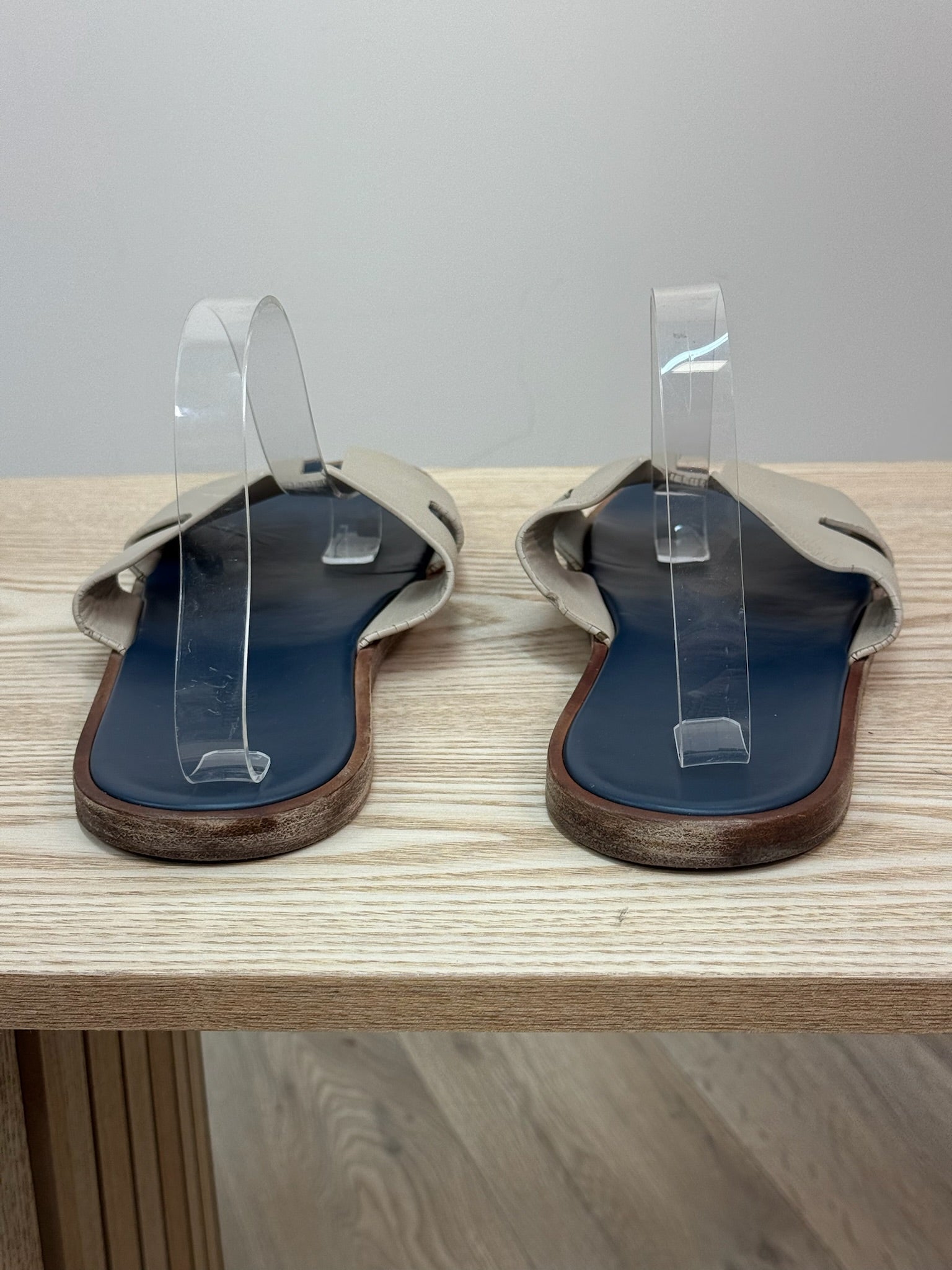 Hermès Nude & Navy Oran Leather Slider EU44/UK10