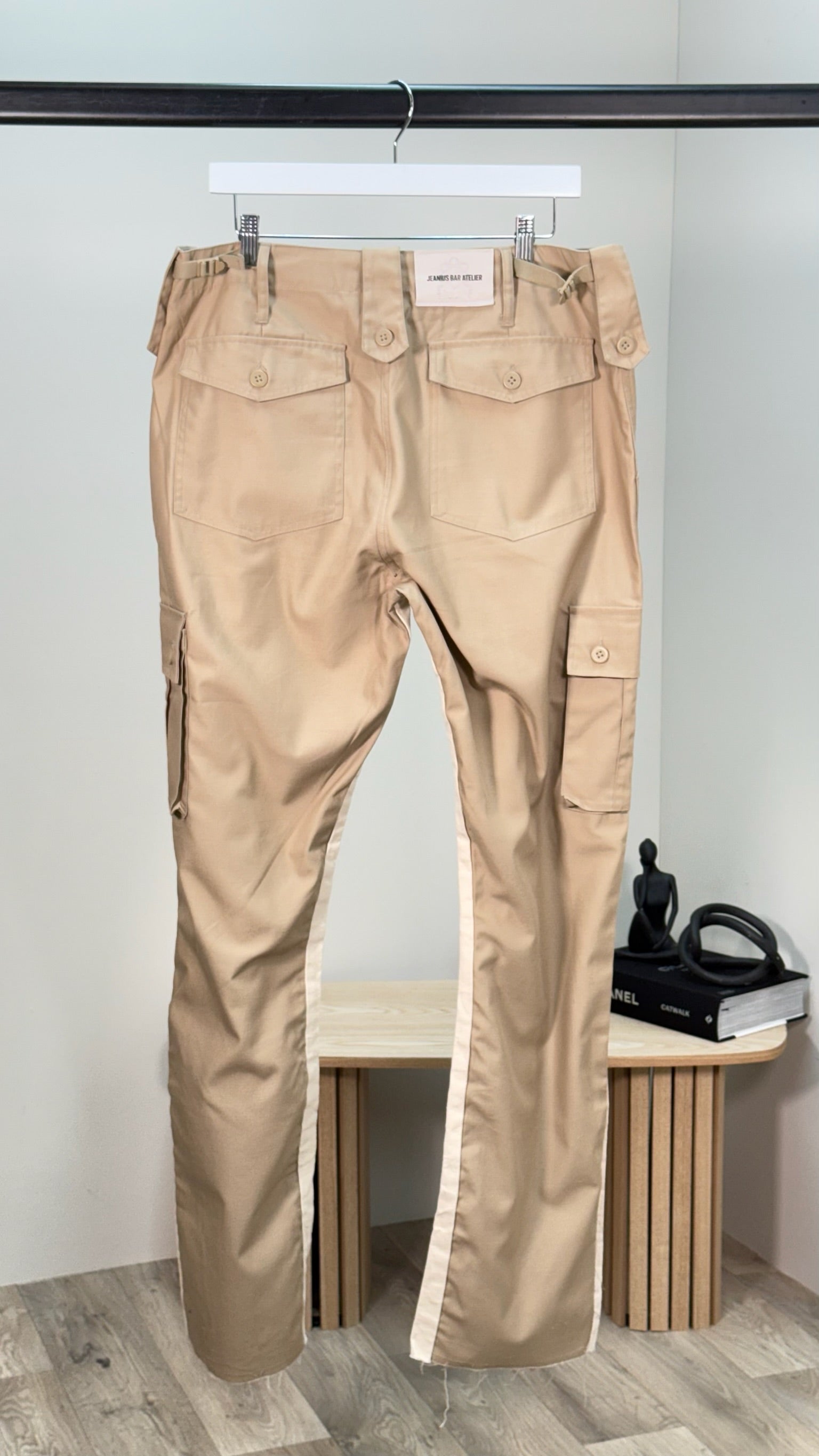 Jeanius Bar Atelier Panelled Twill Cargo Trousers In Beige - Waist 36