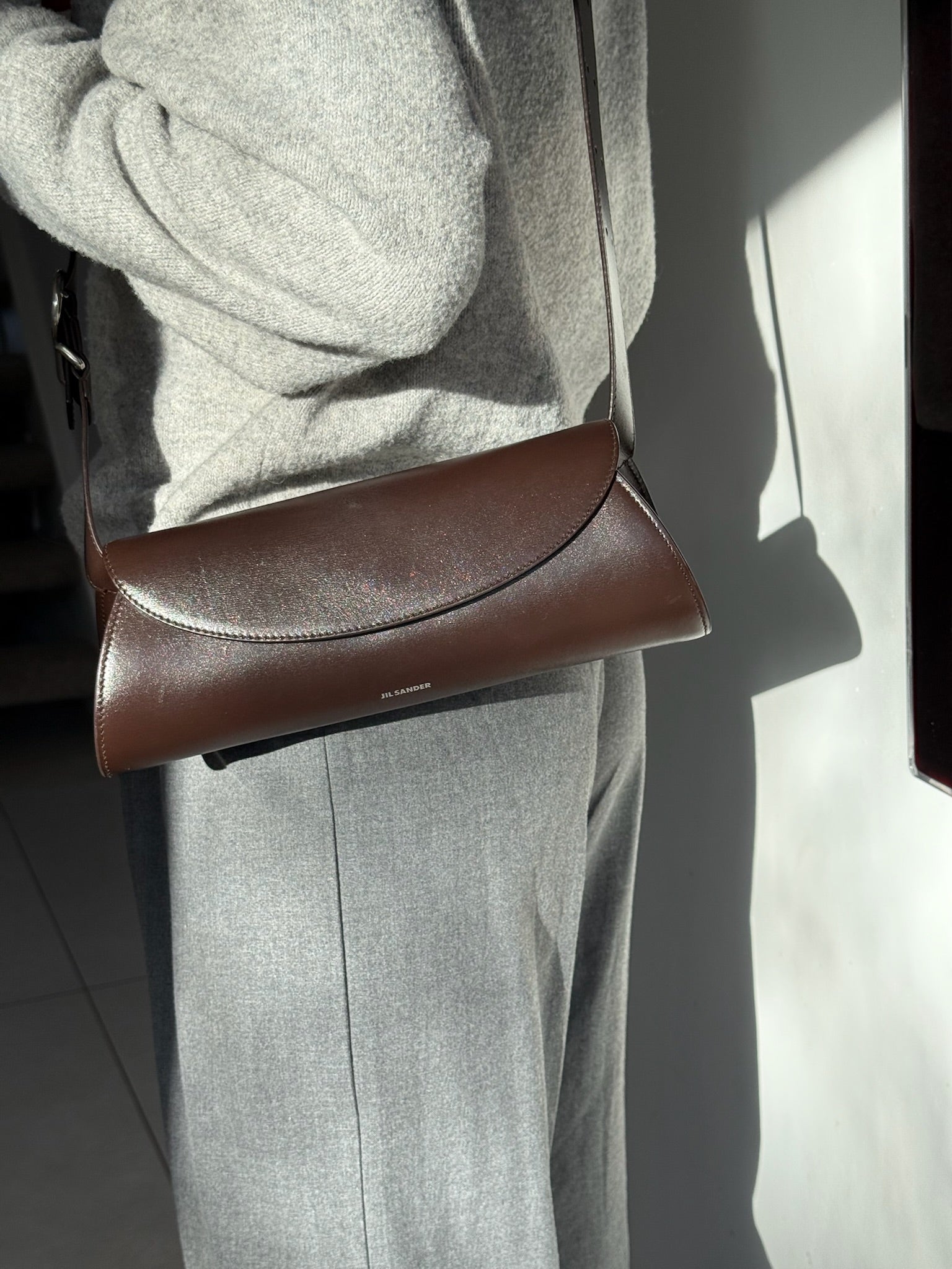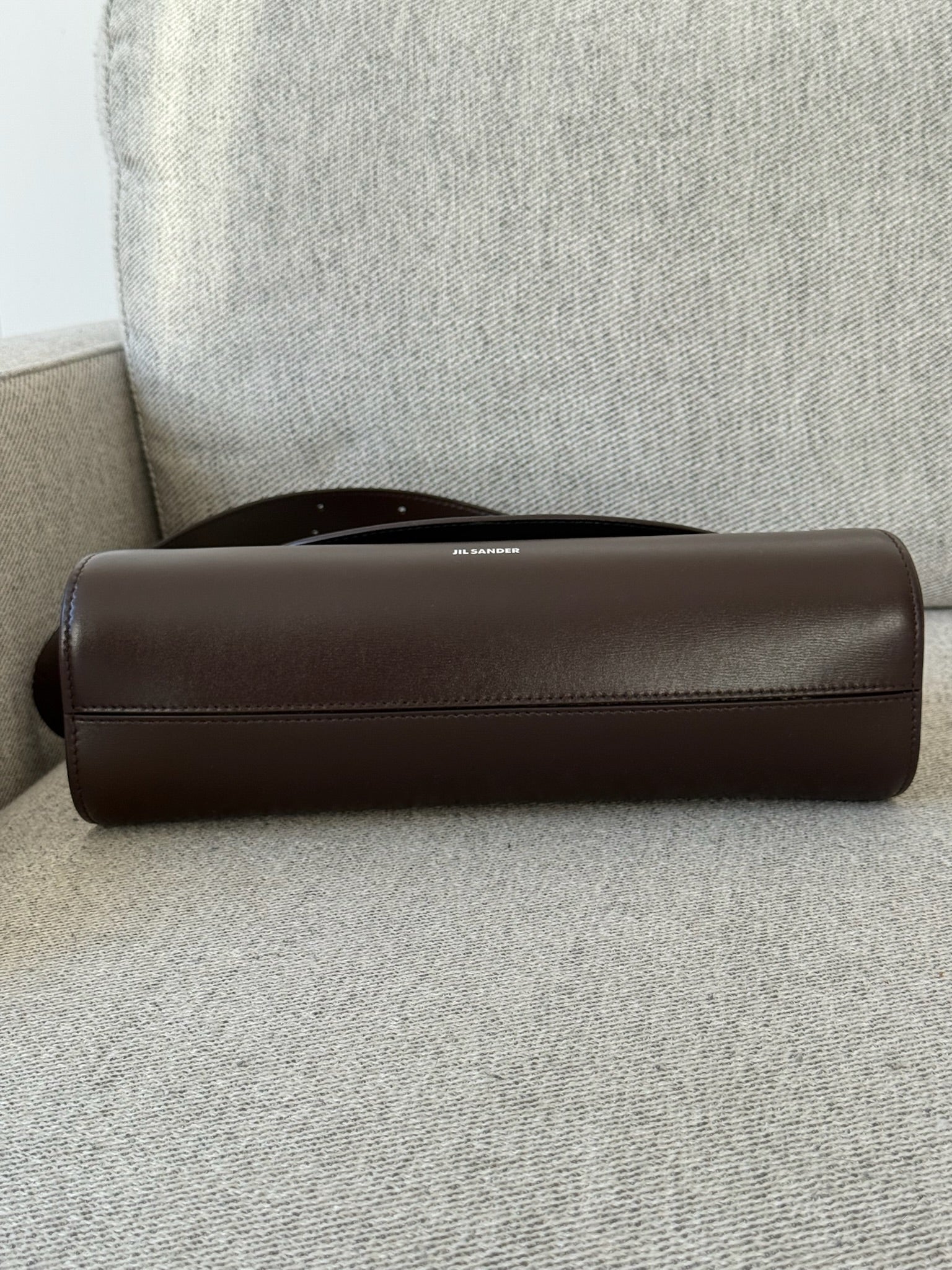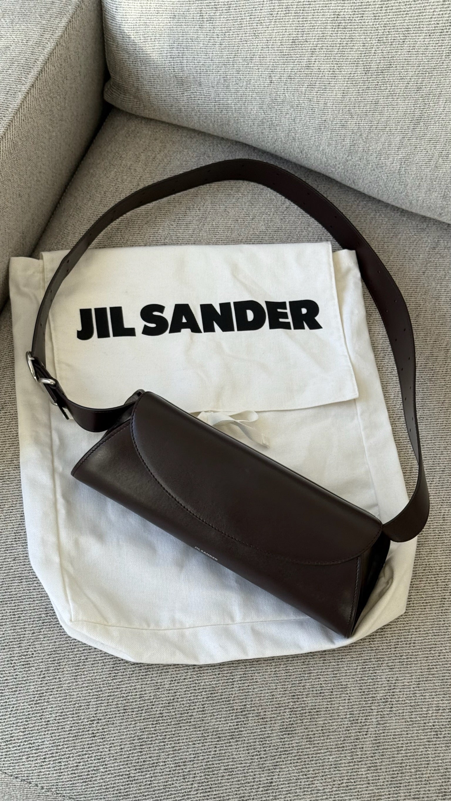 Jil Sanders Cannolo Leather Shoulder bag in Chocolate