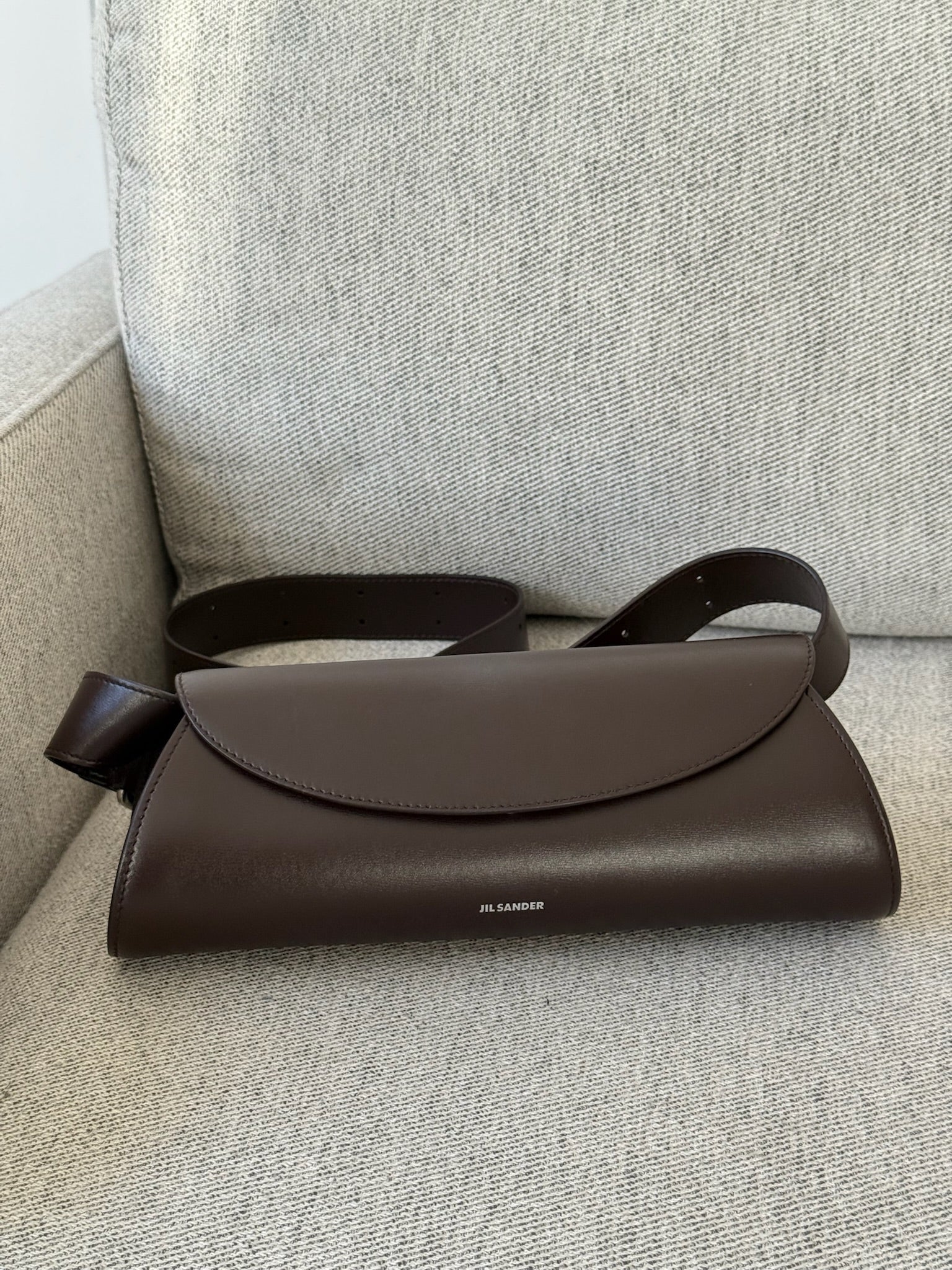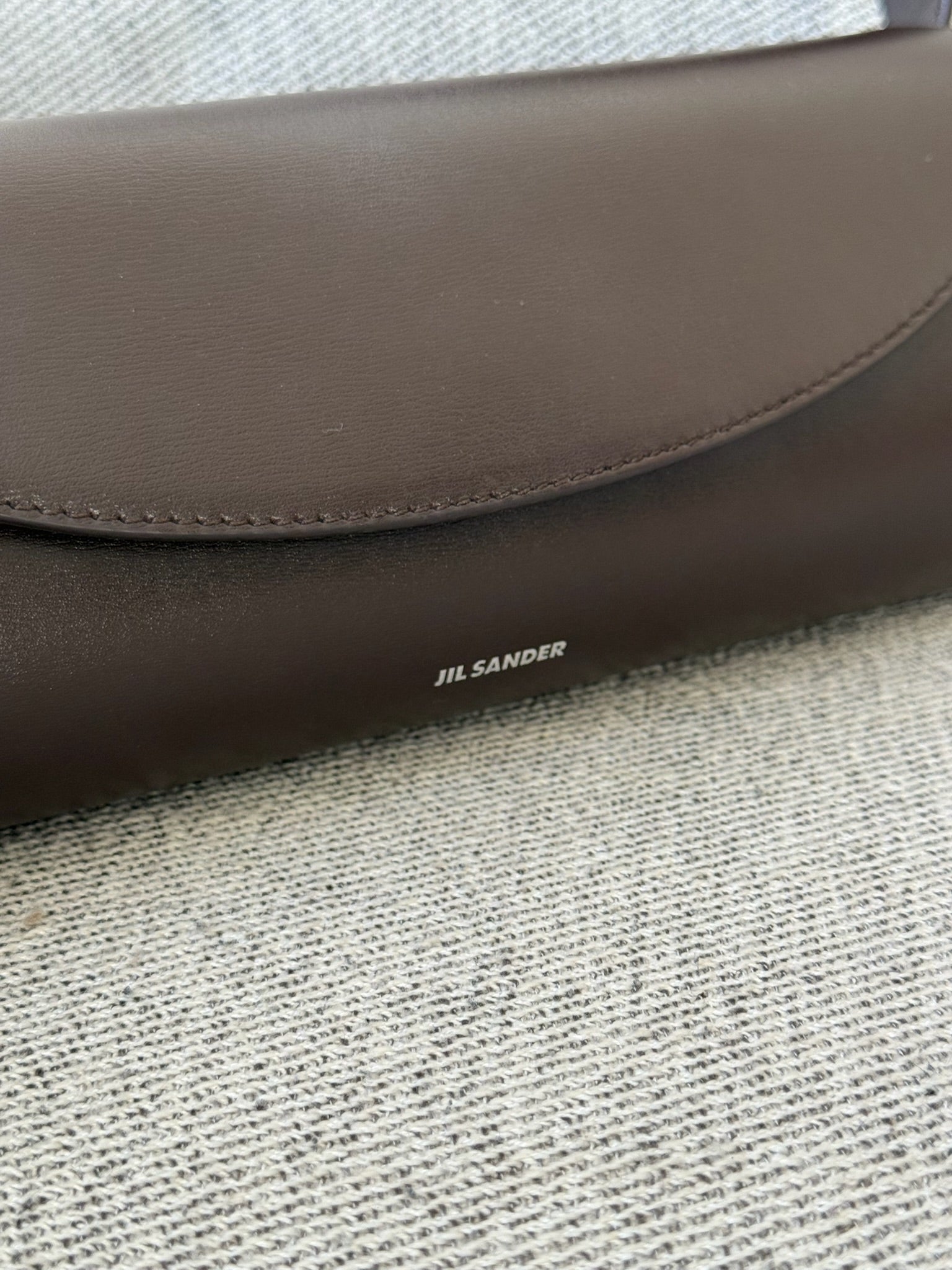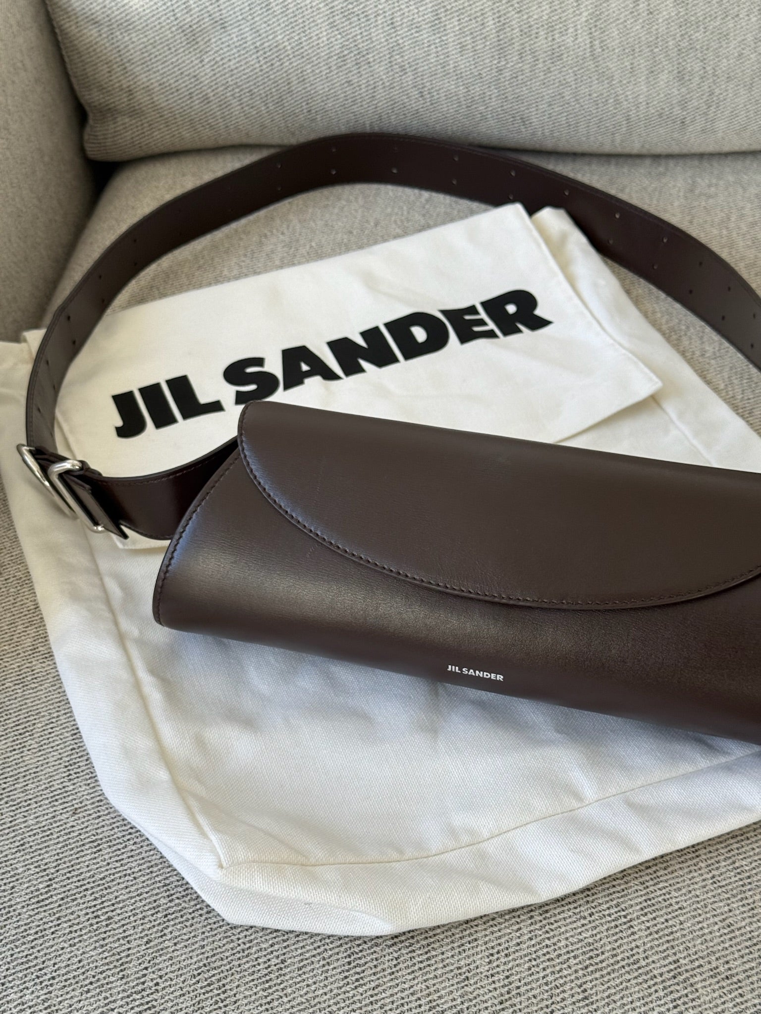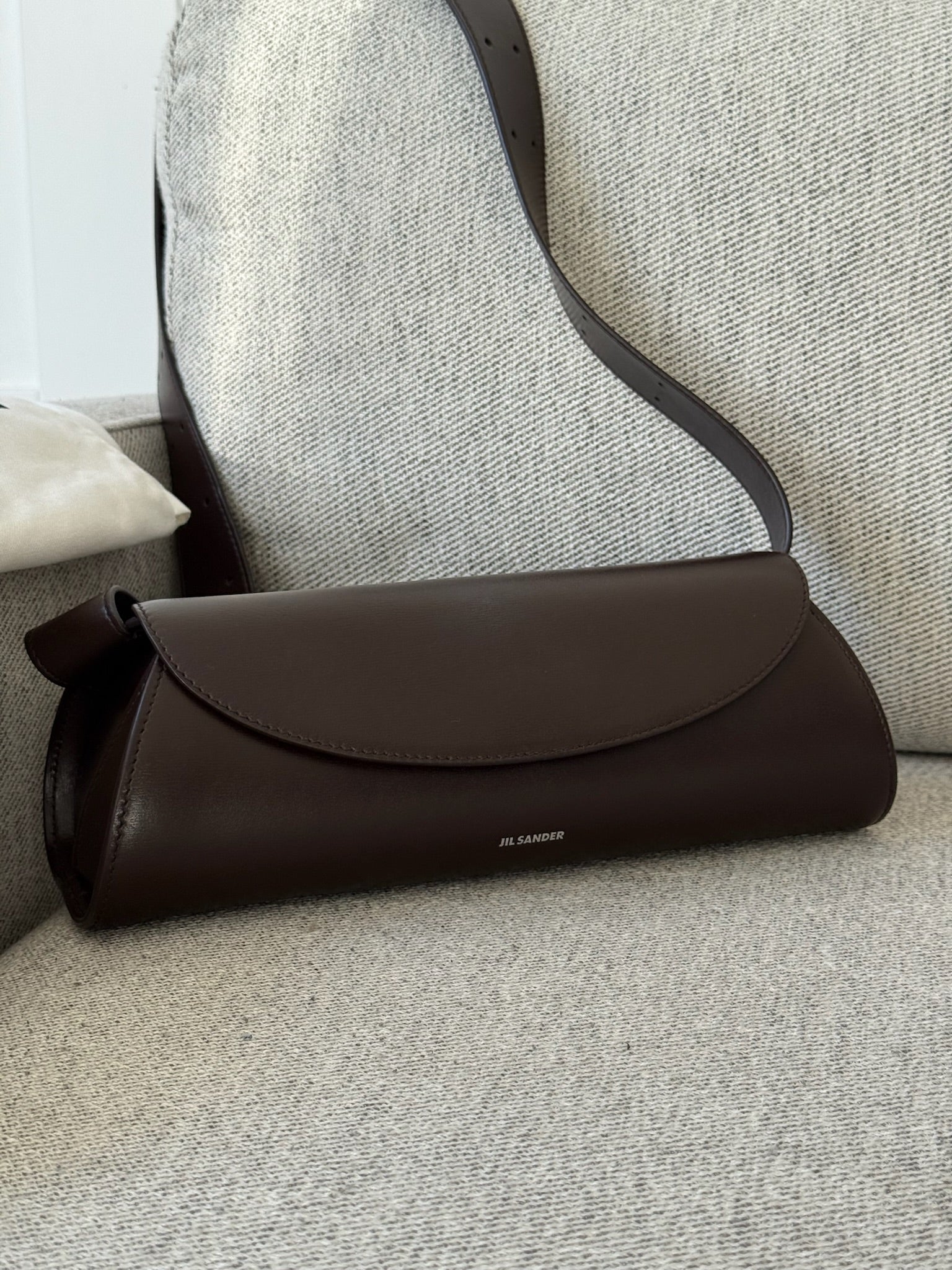 Jil Sanders Cannolo Leather Shoulder bag in Chocolate