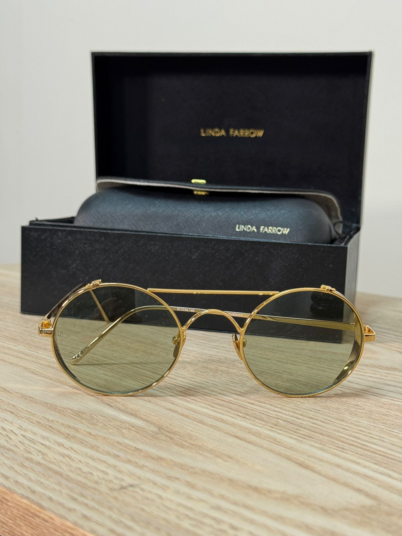 Linda Farrow Green Lens Gold Round Horseframe Sunglasses - One Size