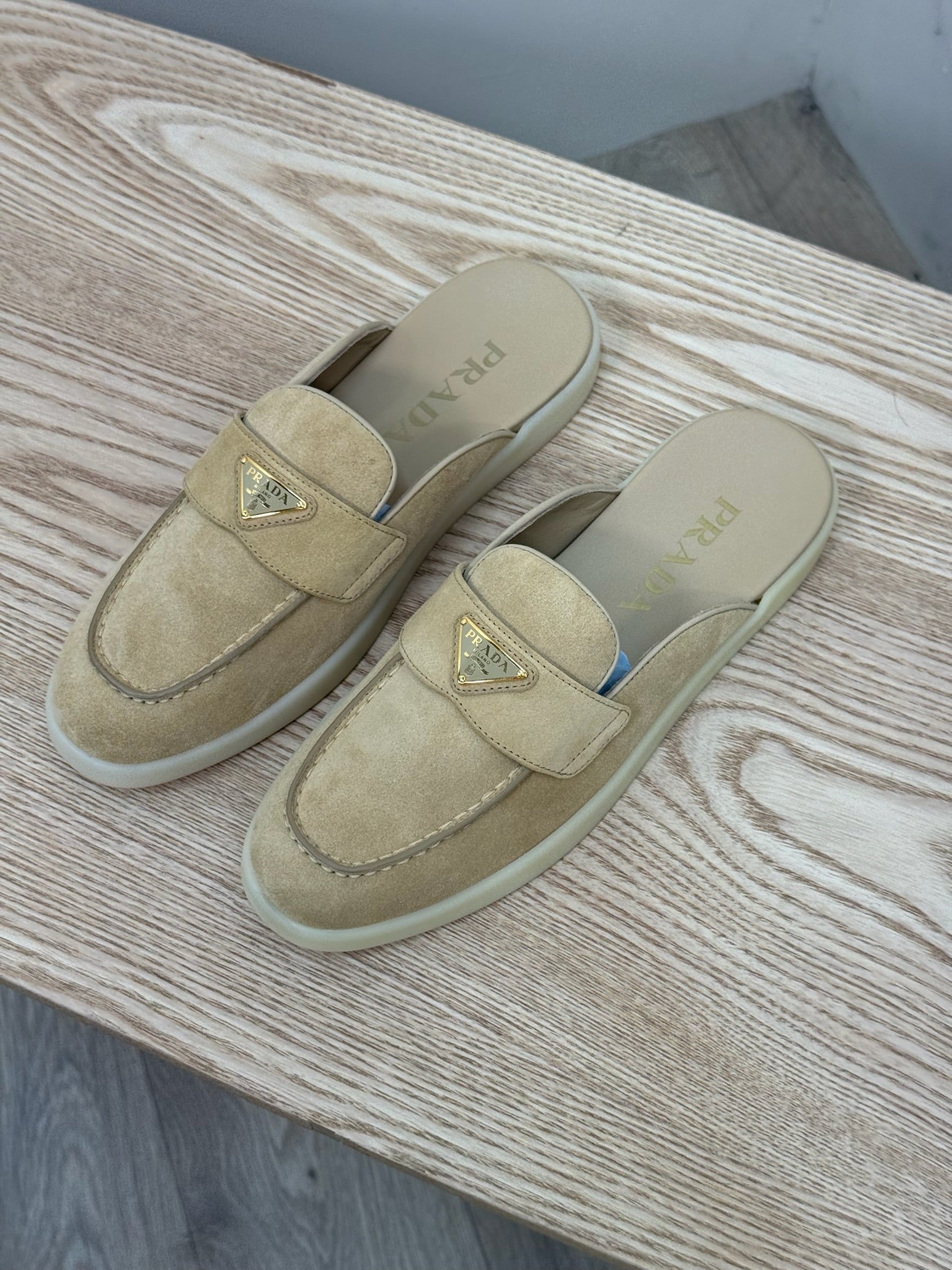 Prada Nude Suede Loafer Mules- Brand New In Box Uk 4.5