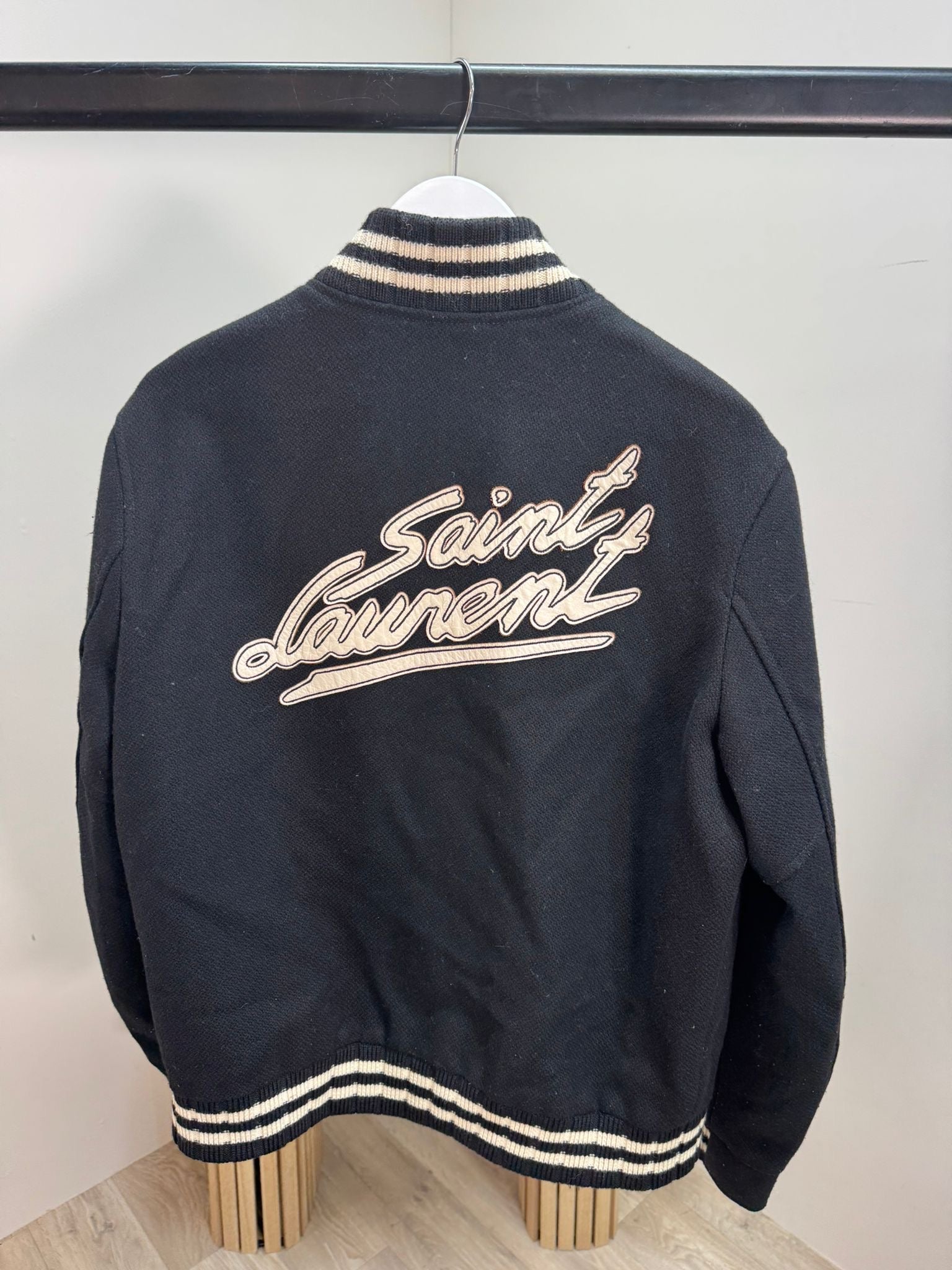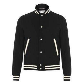 Saint Laurent Black & White Wool-Rich Teddy Varsity Bomber Jacket – 52 / XL